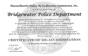 Accreditation must be renewed every three years and, following this year’s renewal, the Bridgewater Police Department will be up for re-accreditation again in October 2025.