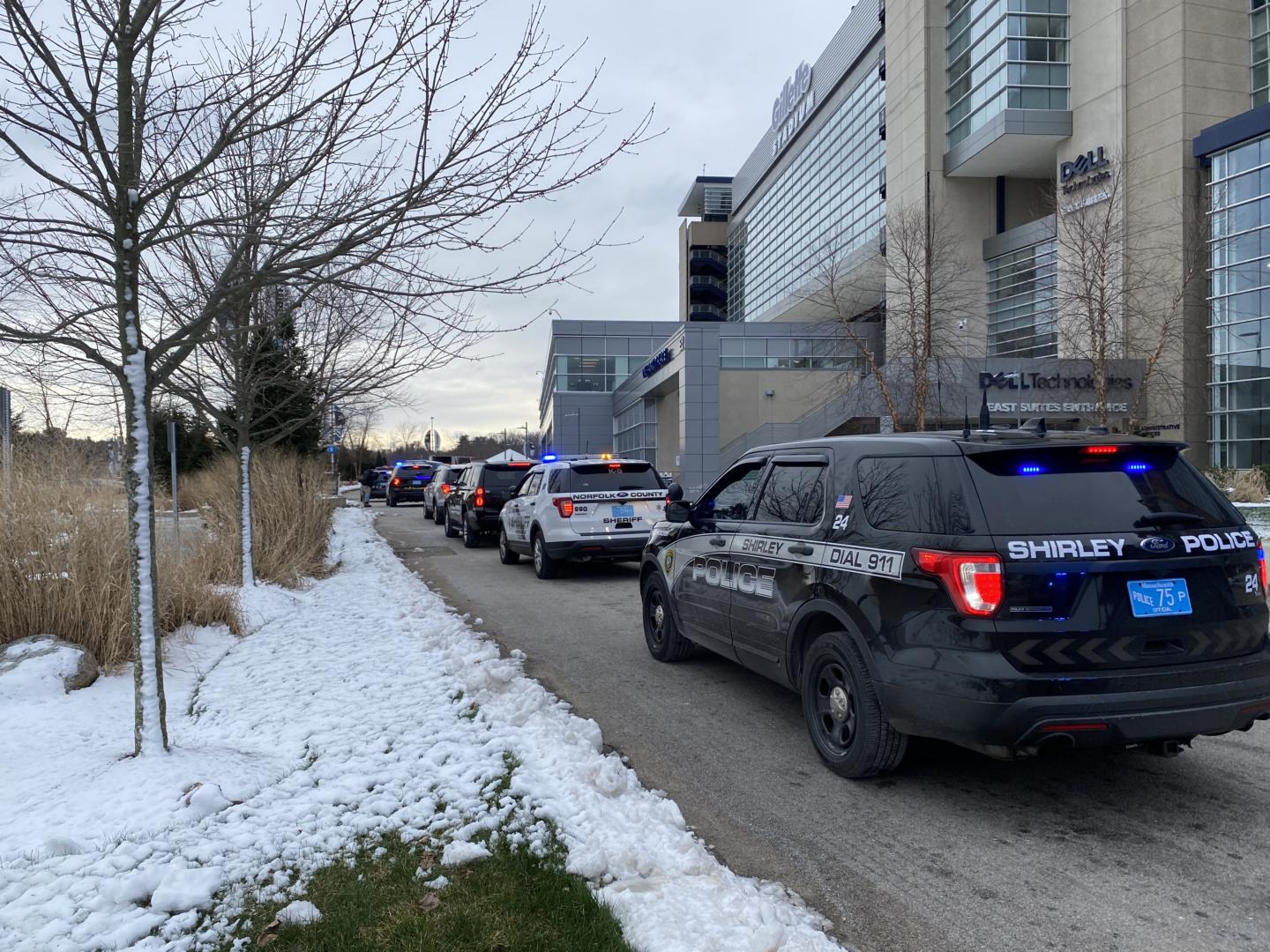Local police officers from the state’s 351 cities and towns convoyed in police cruisers and other police vehicles to Gillette Stadium to retrieve their buckets. Each bucket contains a coat, masks, hand sanitizer and snacks that will be distributed to veterans in local officers’ cities and towns. Police officers from across the state will then give out the buckets as a way to engage and connect with homeless veterans in their communities.